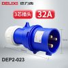 Ổ cắm,nhãn hiệu: DELIXI, mã: DEP2-123 3P32A,chống nước IP44,chống cháy 1 pha 3 chấu.
